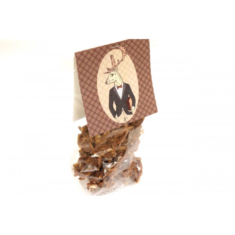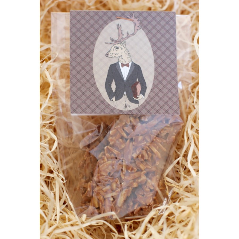 Schokov Säckchen gefüllt mit Mandelbarren mit Vollmilchschokolade - verpackt mit Hilfe unseres diesjährigen Weihnachtselches!